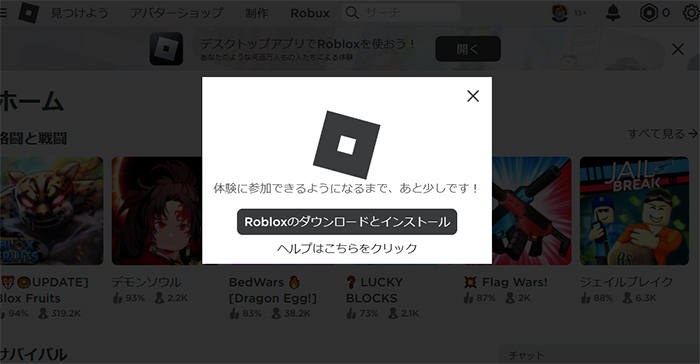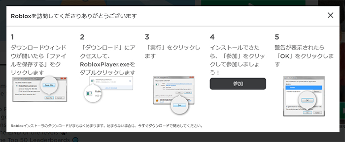 (2)Robloxインストーラをダウンロードする