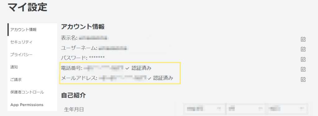※新規登録時に13歳未満で登録していた場合、電話番号・メールアドレスの項目の代わりに「保護者のメールアドレス」項目が表示されます。