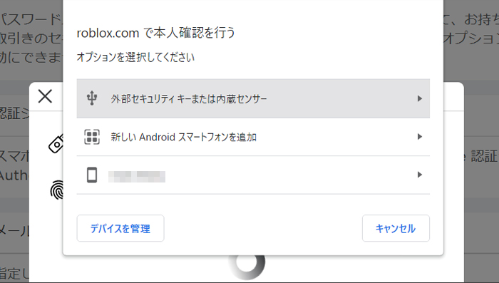 生体認証システムを利用した2段階認証設定です。   この設定を行うと、ログイン時にユーザーネームとパスワードに加え、使用デバイスの内蔵センサーやスマートフォンを使用した顔認証もしくは指紋認証が求められるようになります。 選べる3つのセキュリティのうち、もっとも強固な認証設定といってもいいでしょう。   この項目を有効化するには、Web上で設定を行う必要があります。 そして、「認証システムアプリ」による認証設定を有効化しておくことと、生体認証システムに対応したデバイスも必要です。     「ウェブ上のみのセキュリティキー」をチェックすると、本人確認を行うために使用するデバイスを選択する表示が出ます。   自分の環境にあわせて使用するデバイスを選択し、表示された内容にあわせて生体認証設定を行えば設定完了です。   セキュリティキーは5つまで登録が可能です